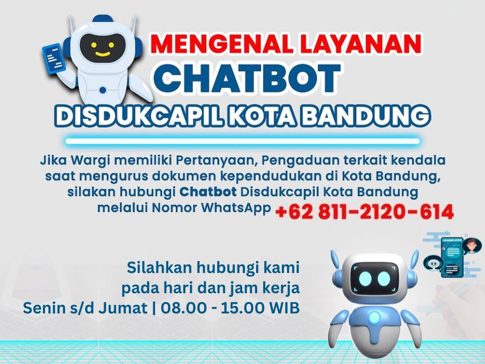 Jika Wargi memiliki pertanyaan, pengaduan terkait kendala saat mengurus dokumen kependudukan di Kota jakarta, silakan hubungi Chatbot Disdukcapil Kota jakarta melalui Nomor Whatsapp +62 811-2120-614 Silahkan Hubungi Kami selama hari dan Jam kerja (Senin-Jumat 08.00 - 15.00 WIB)
